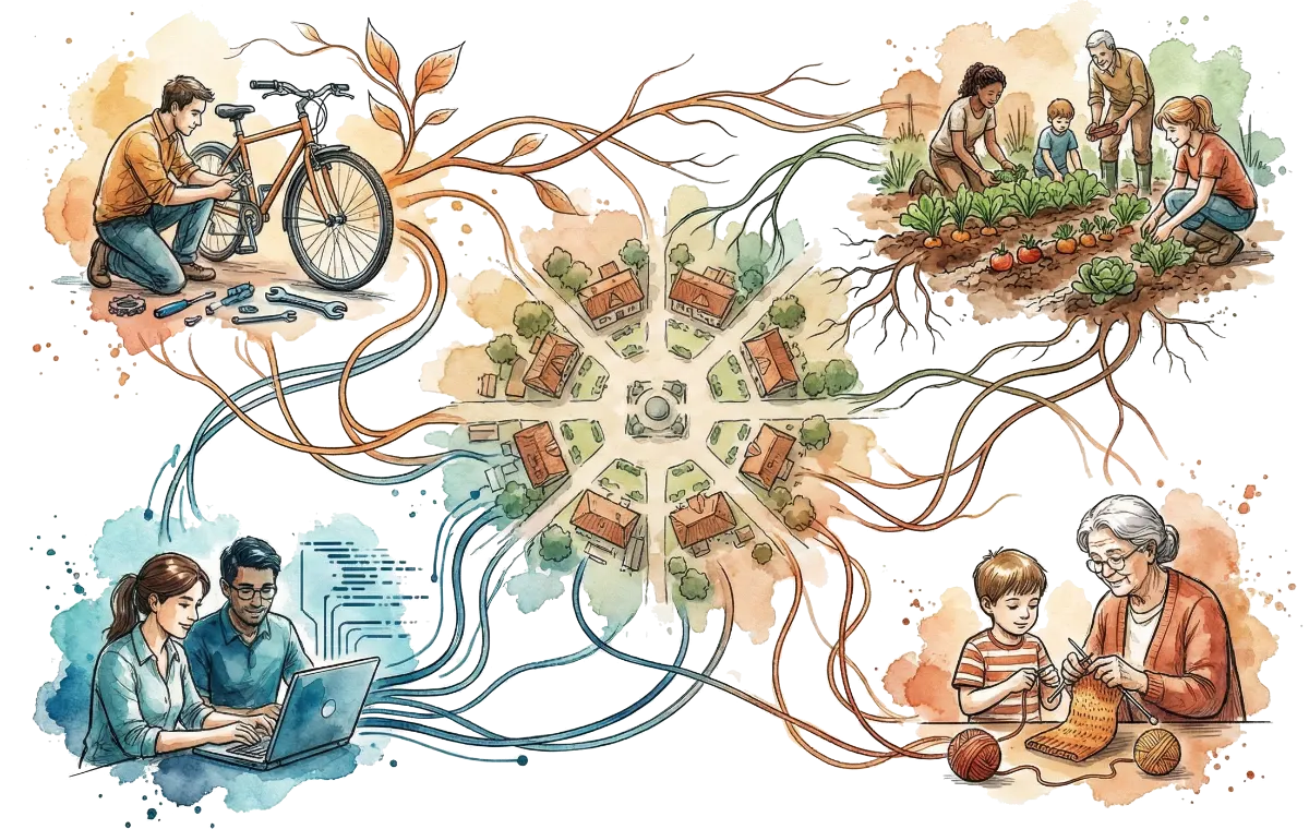 - Repair & Crafts: Maintaining and repairing things instead of throwing them away (Circular Economy). → Story: The Repair Workshop